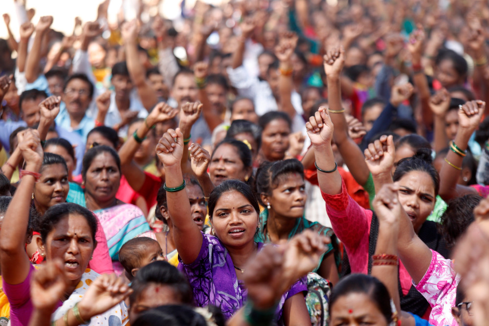 People from nomadic tribes and other communities participate in a protest rally against a new citizenship law in Mumbai, India, Tuesday, March 3, 2020. The new citizenship law fast-tracks naturalization for non-Muslim migrants from neighboring Pakistan, Bangladesh and Afghanistan who are living in the country illegally. (AP/Rajanish Kakade)
