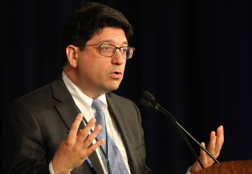 Anthony Picarello Jr., associate general secretary for policy and advocacy of the U.S. Conference of Catholic Bishops, responds to questions during the conference's spring general assembly in Baltimore June 12, 2019. (CNS/Bob Roller)