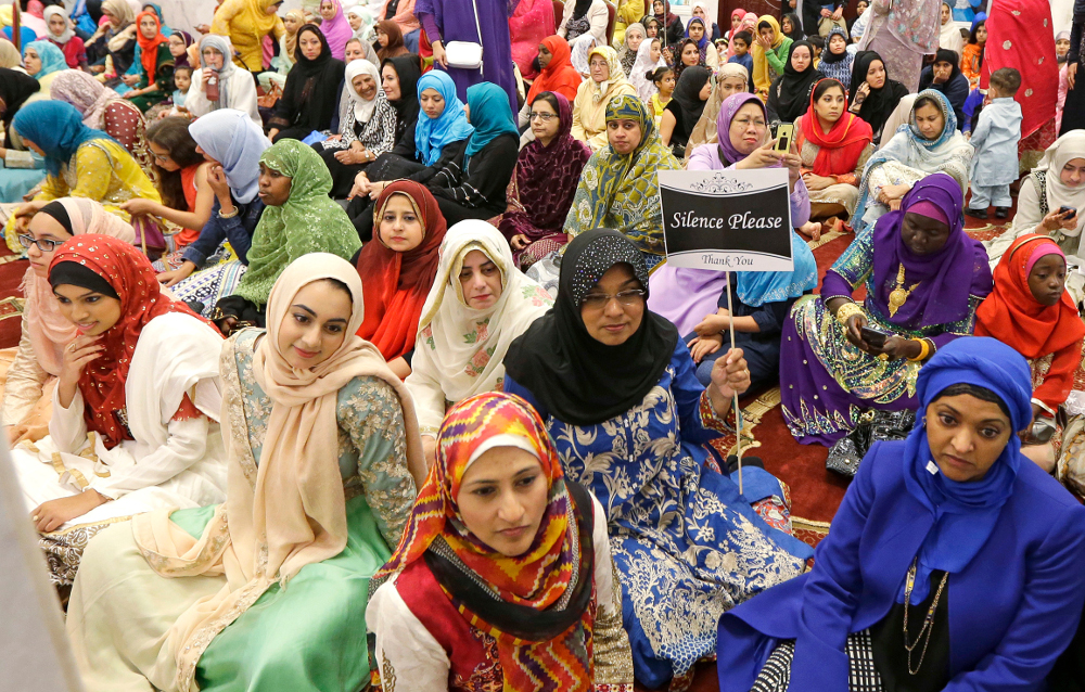 Women listen to a speaker during a prayer service at the Muslim Association of Puget Sound Redmond Mosque in Redmond, Washington, to mark the end of Ramadan and the start of Eid-al-Fitr, July 6, 2016. (AP/Ted S. Warren)