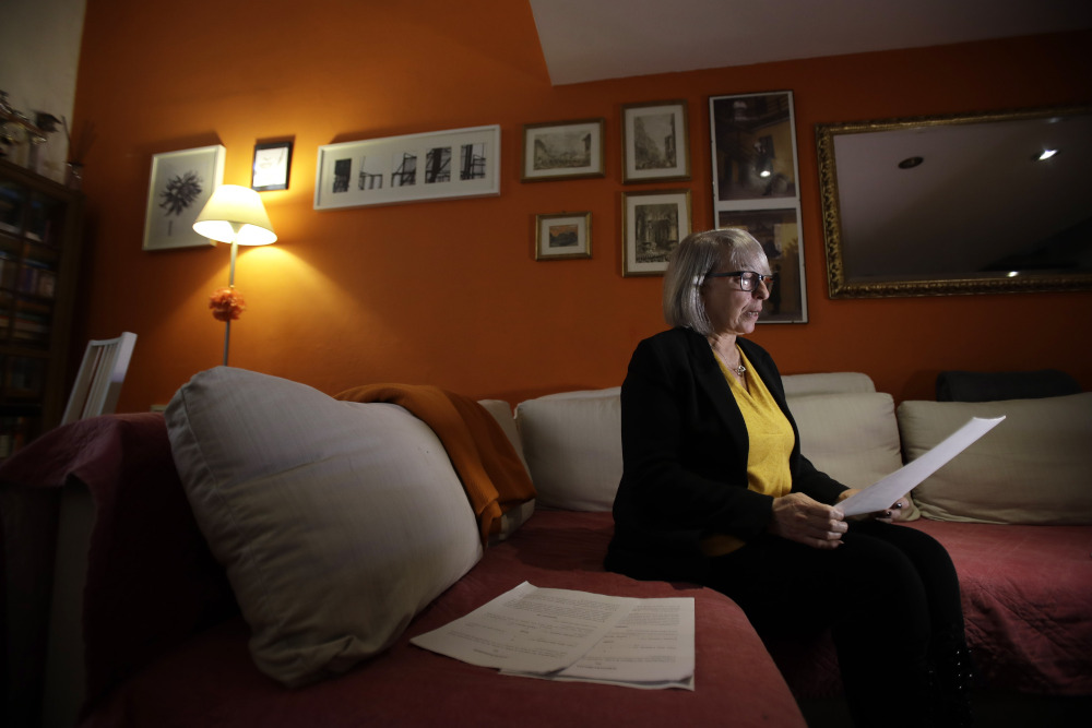 Yolanda Martínez reads a letter of her son during a Jan. 31 interview with the Associated Press at her home, in Milan, Italy. Her son was sexually abused by one of the priests of the Legion of Christ, a disgraced religious order. (AP/Luca Bruno)