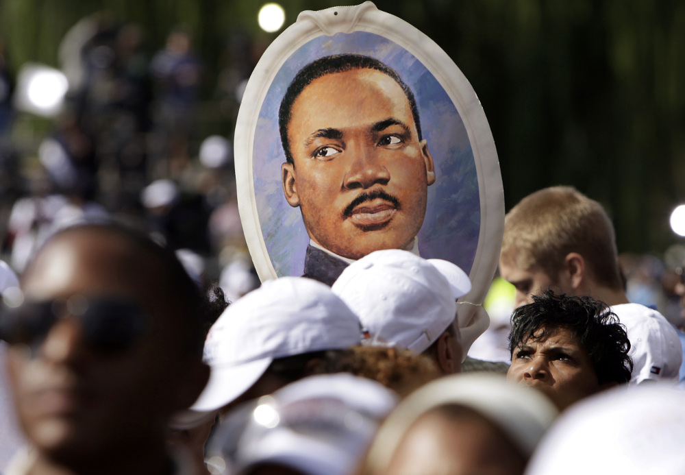 A woman holds a portrait of the Rev. Martin Luther King Jr. during the 2011 dedication of the King memorial at the National Mall in Washington. Fifty years after the assassination of the civil rights leader, "we need to ask ourselves if we are doing all we can to build the culture of love, respect and peace to which the Gospel calls us," the U.S. bishops' Administrative Committee said March 28. (CNS/Yuri Gripas, Reuters)