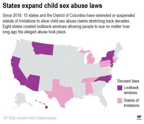 Seven other states changed statute of limitations so victims could file civil cases alleging abuse later in life. Many states also have "discovery" rules allowing alleged victims to sue even later if they can show they only realized the impact of the abuse in recent years.