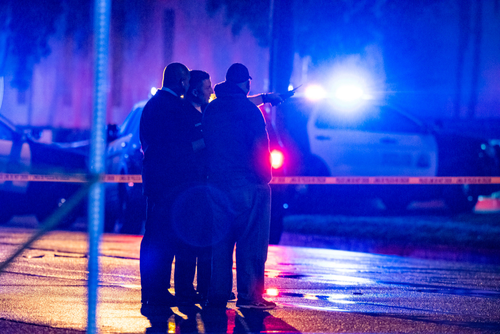 Santa Ana detectives and officers investigate the scene where an armed man was shot Sunday afternoon by Santa Ana police at Immaculate Heart of Mary Church in Santa Ana, Calif., Sunday, March 1, 2020. Santa Ana police officers fatally shot an armed man Sunday afternoon inside the Catholic church, the Orange County Register reported. (AP/The Orange County Register/Leonard Ortiz)
