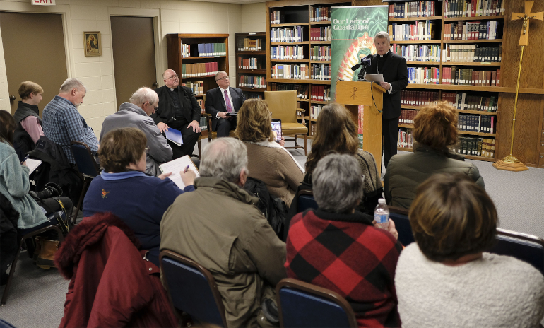 Bishop R. Walker Nickless of Sioux City, Iowa, speaks during a Feb. 25, 2019, news conference, after releasing a list of 28 names of priests in his diocese credibly accused of the sexual abuse of minors. (CNS photo/Jerry L. Mennenga for the Catholic Globe)