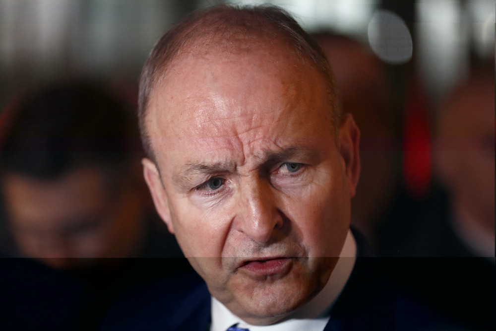 Fianna Fail leader Micheal Martin talks to the media outside the government building in Dublin, Jan. 22, 2025.(AP/Peter Morrison, File)